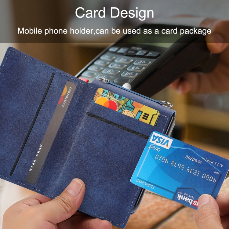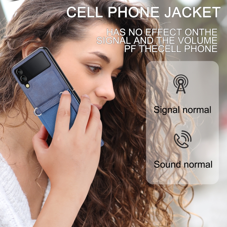 Funda para Samsung Galaxy Z Flip3 5G con Tarjetero y Cordón Largo (Azul)
