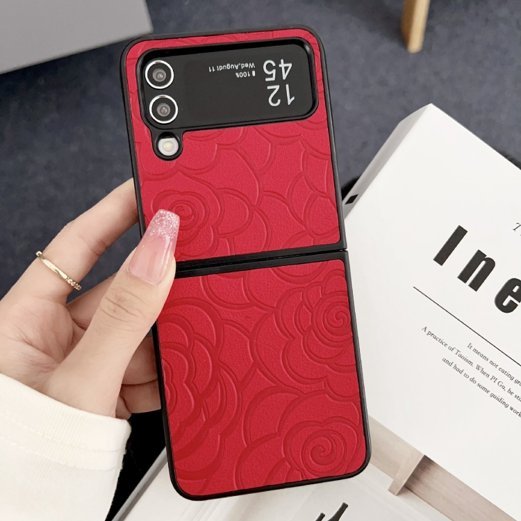Funda Protectora Samsung Galaxy Z Flip3 con Patrón de Flores (Rojo)