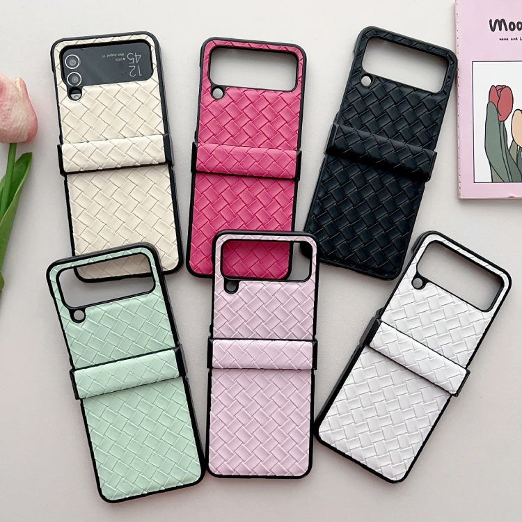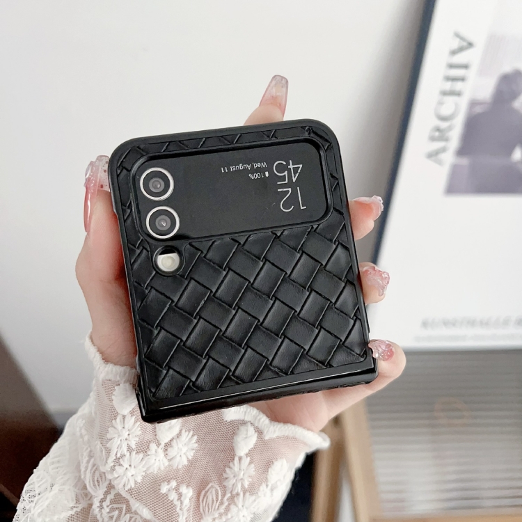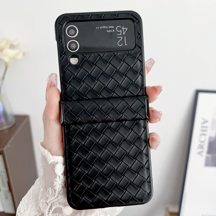 Funda para teléfono Samsung Galaxy Z Flip3 Juego de Tres Piezas PU Plegable con Textura Tejida (Negro)