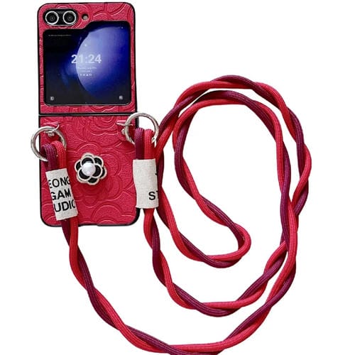 Funda Protectora Samsung Galaxy Z Flip4 5G Impression Camellia Pattern con Cordón Largo (Rojo)