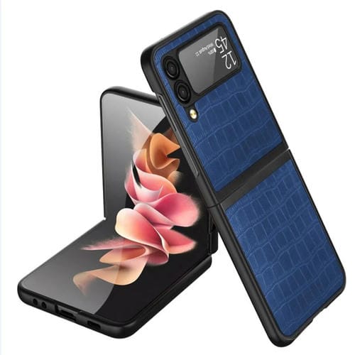 Estuche para Teléfono Samsung Galaxy Z Flip4 Cocodrilo Textura Ultrafino (Azul)