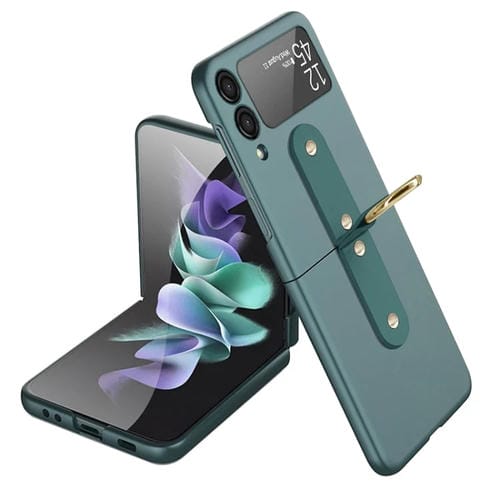 Estuche para teléfono Samsung Galaxy Z Flip4 PC con anillo rociado con aceite (Verde)