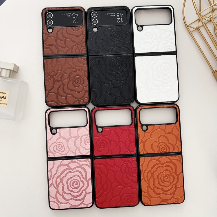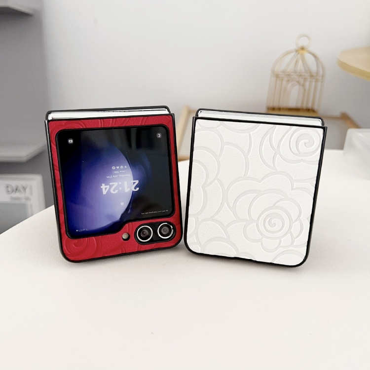 Funda Protectora Samsung Galaxy Z Flip4 con Patrón de Flores Impresión (Rojo)