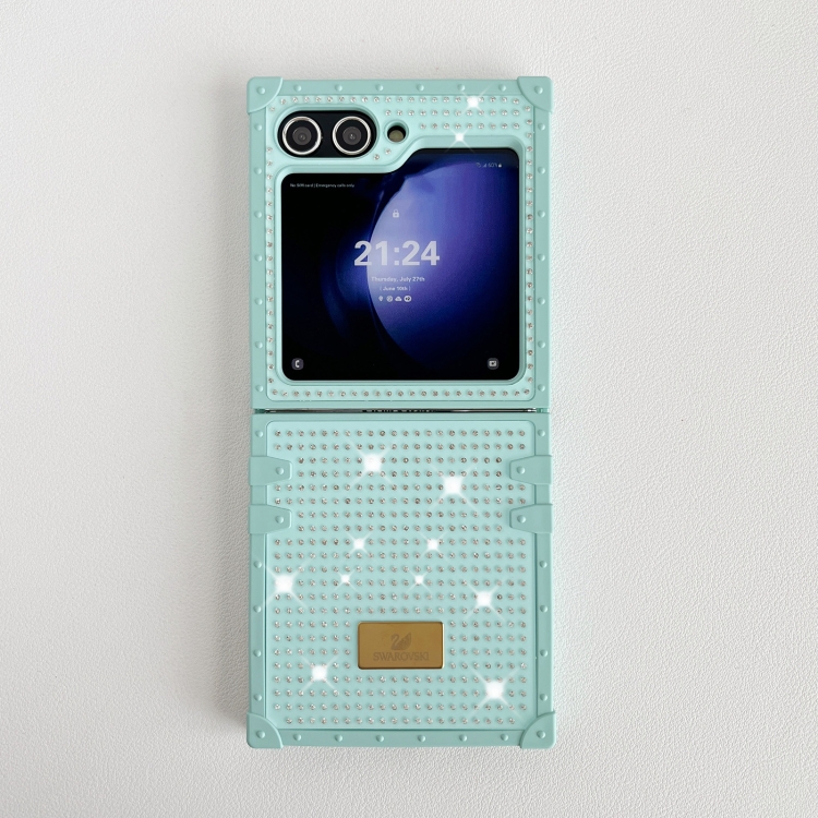 Estuche para teléfono Samsung Galaxy Z Flip5 5G PC a prueba de golpes con diamantes completos y logotipo de cisne (Azul)