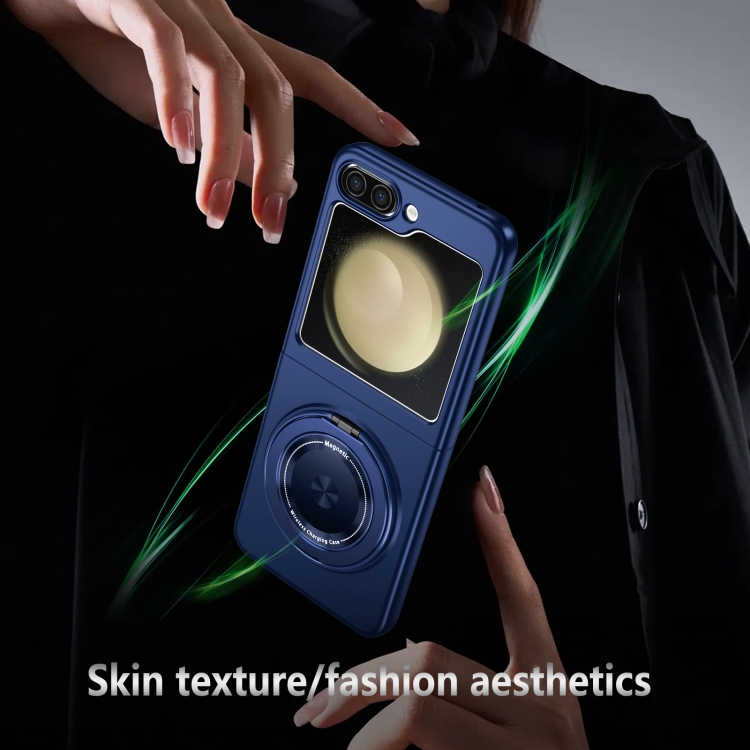 Funda para Teléfono Samsung Galaxy Z Flip5 5G Soporte Giratorio 360 Grados Magsafe PC a Prueba de Golpes (Azul)