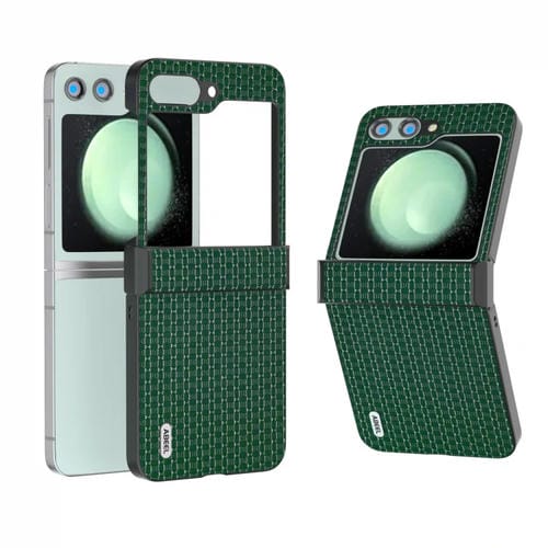 Funda para Teléfono Samsung Galaxy Z Flip5 Abeel Hinge Cuero Genuino Serie de Lujo (Verde Noche)