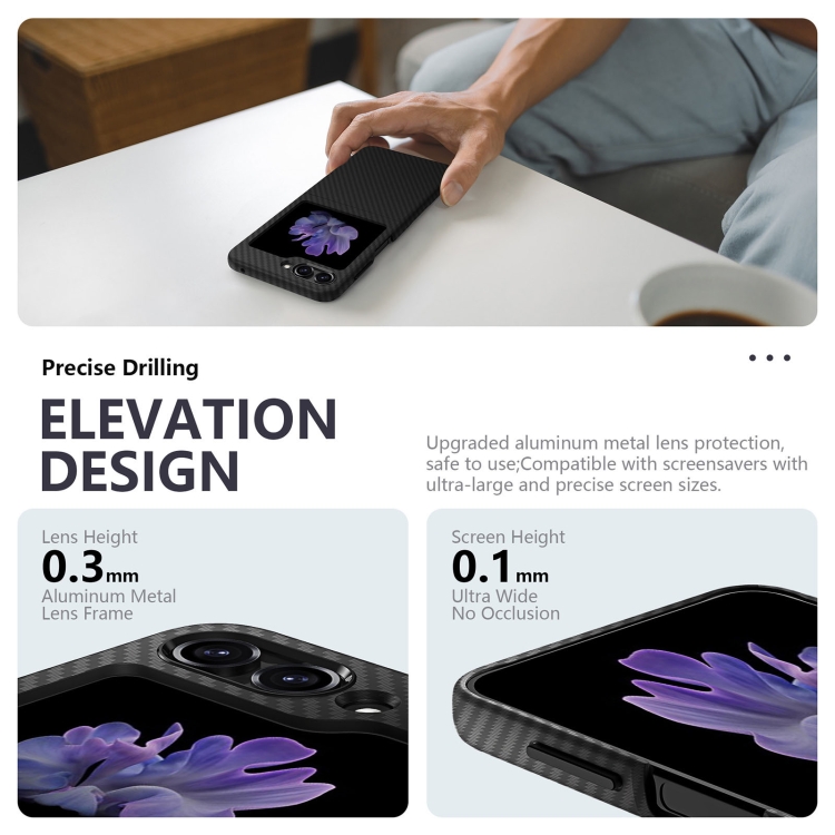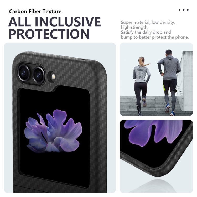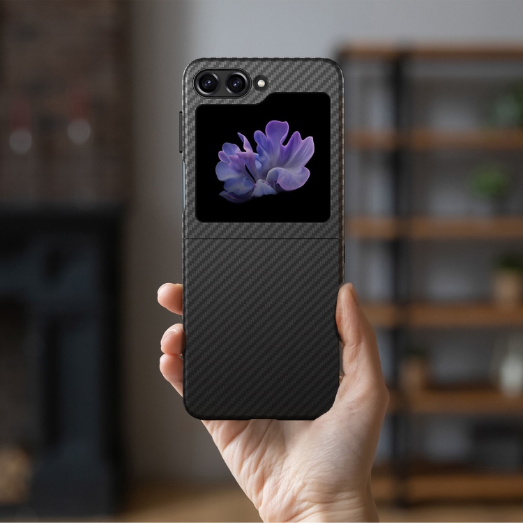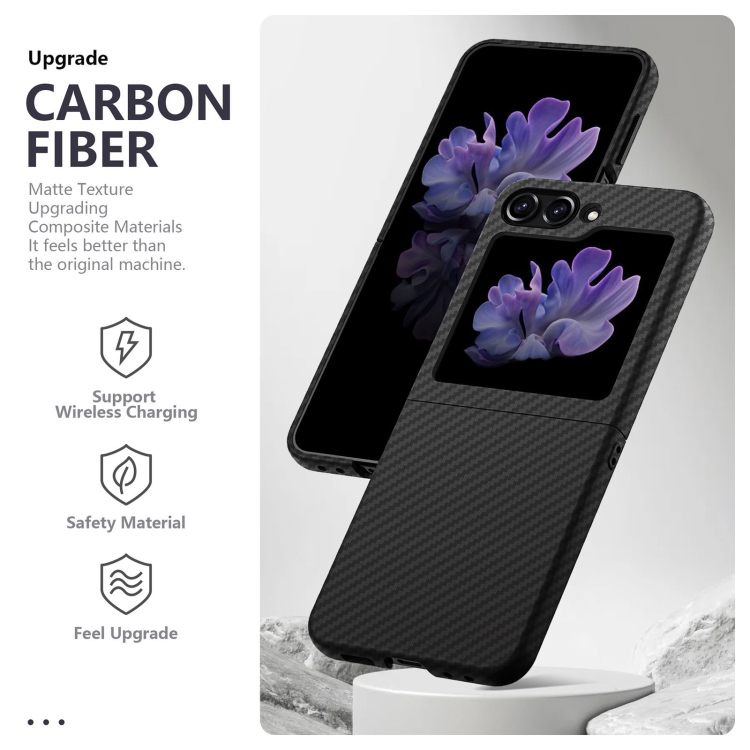 Funda plegable para Samsung Galaxy Z Flip5 con pegatina de agua para PC (Fibra de Carbono Negra)