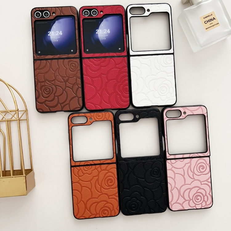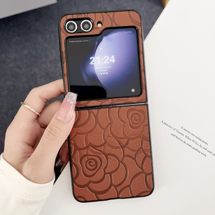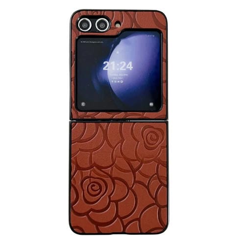 Funda Protectora Samsung Galaxy Z Flip5 Patrón de Flores (Marrón)