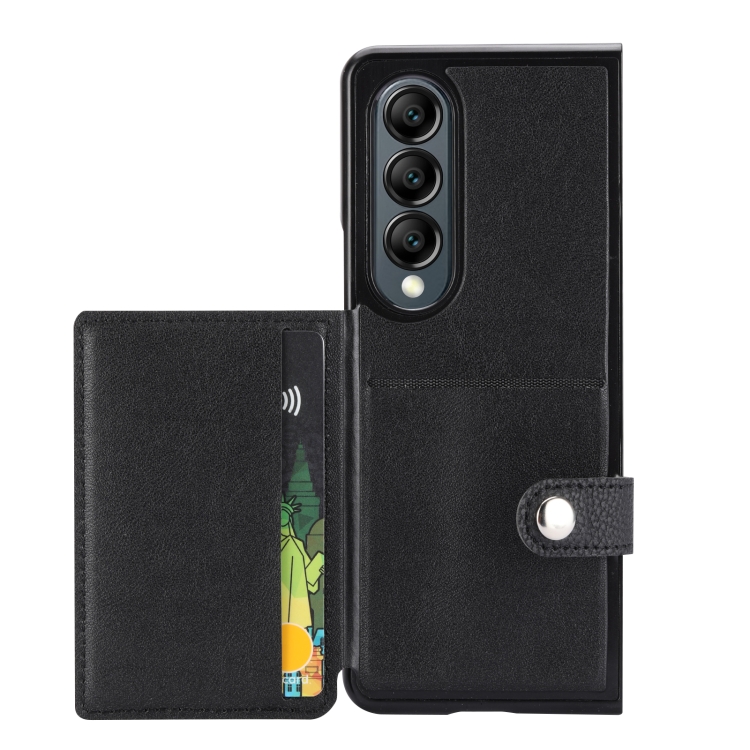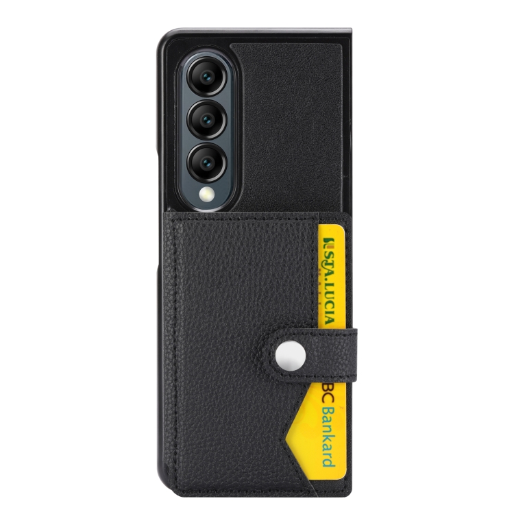 Funda para Teléfono Samsung Galaxy Z Fold4 5G Litchi Pattern con Tarjetero y Botón (Negro)