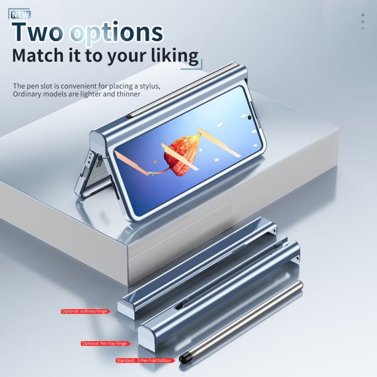 Para Samsung Galaxy Z Fold4 Estuche para teléfono con bisagra de galvanoplastia integrada de cuerpo completo con ranura para bolígrafo (Azul)