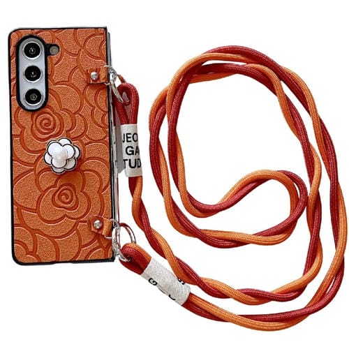 Funda Protectora Samsung Galaxy Z Fold5 5G Impression Camellia Pattern con Cordón Largo (Naranja)