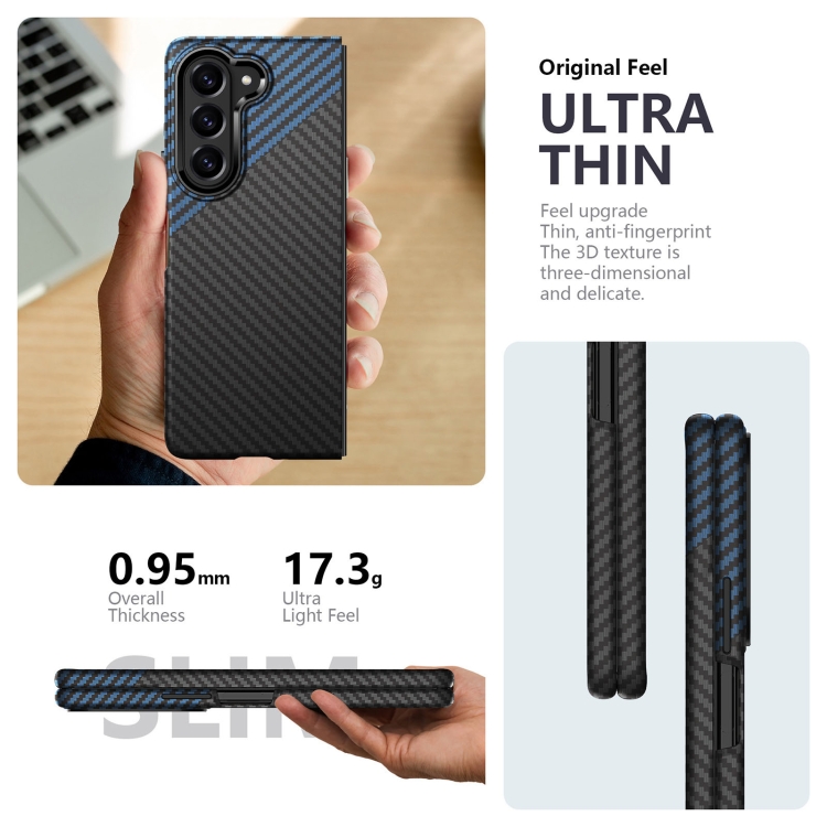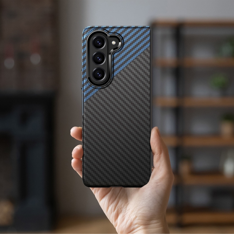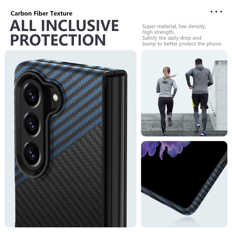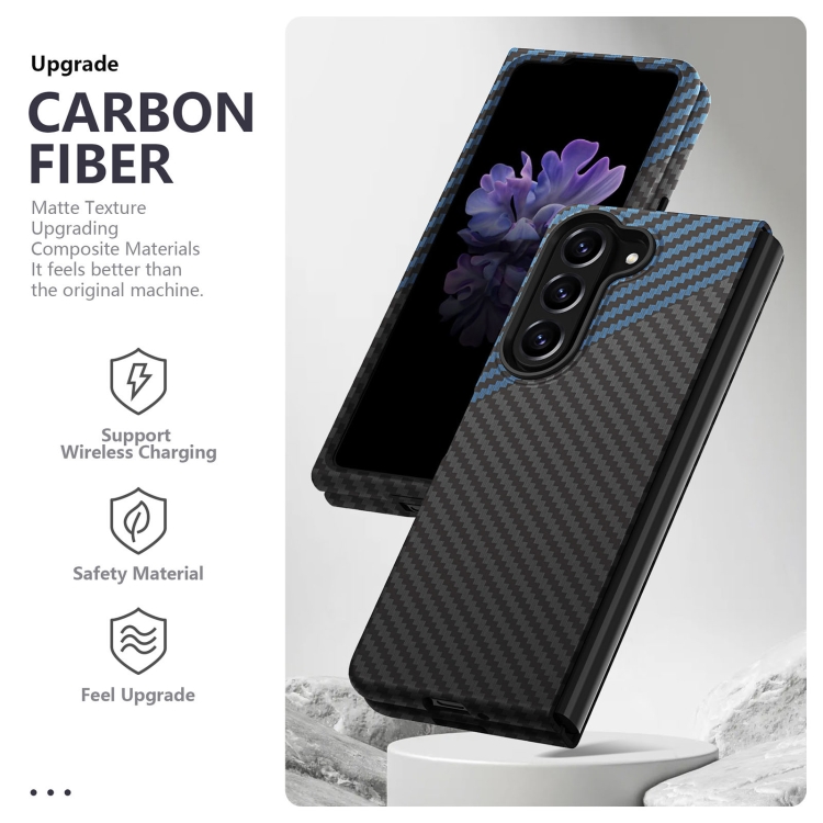 Funda plegable para Samsung Galaxy Z Fold5 con pegatina de agua para PC (Fibra de Carbono) (Negro y Azul)