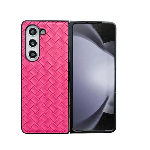 Funda plegable Samsung Galaxy Z Fold5 para teléfono de PU con textura tejida (Rojo Rosa)