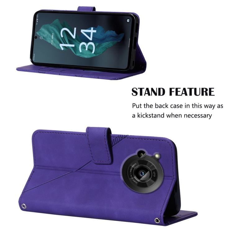 Funda de Cuero con Tapa En Relieve 3D para Sharp Aquos R7 P7 Crossbody (Púrpura)