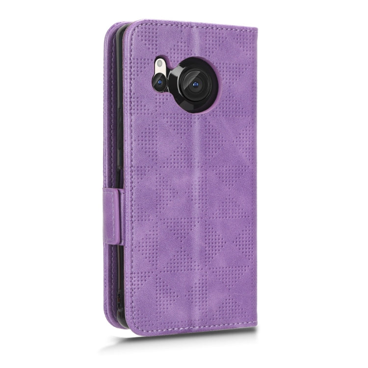 Funda de Cuero para Sharp Aquos R8 con Patrón de Triángulo Simétrico (Púrpura)