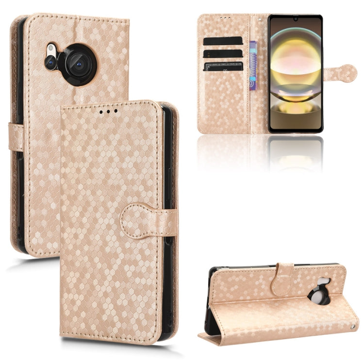 Funda de Cuero para Sharp Aquos R8 Honeycomb Dot Texture para Teléfono (Oro)