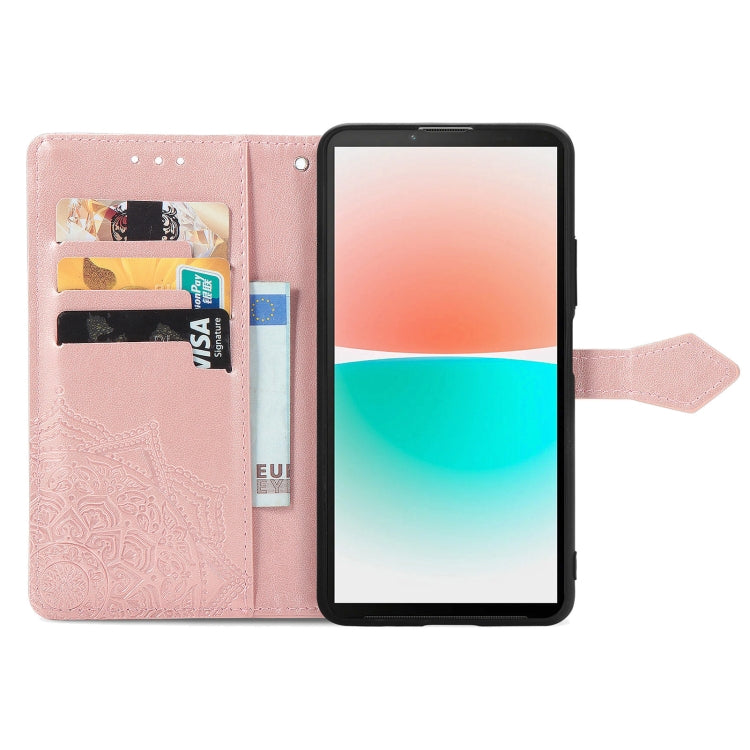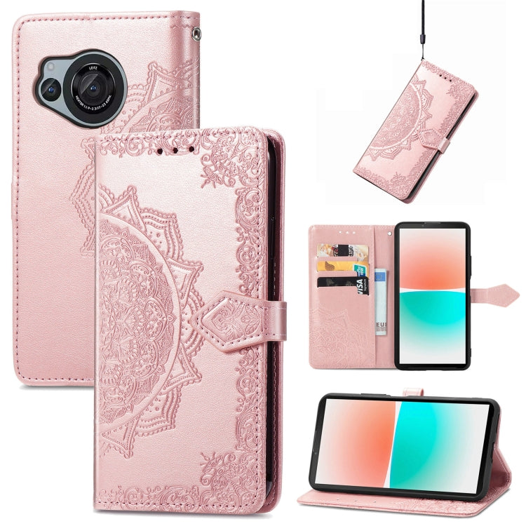 Funda de Cuero para Sharp Aquos R8 Mandala Flower en Relieve (Oro Rosa)