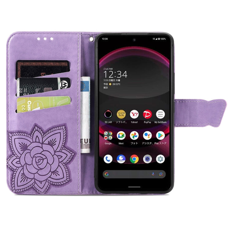 Funda para Sharp Aquos R8 Pro Butterfly Love Flower Cuero en Relieve (Lavanda)
