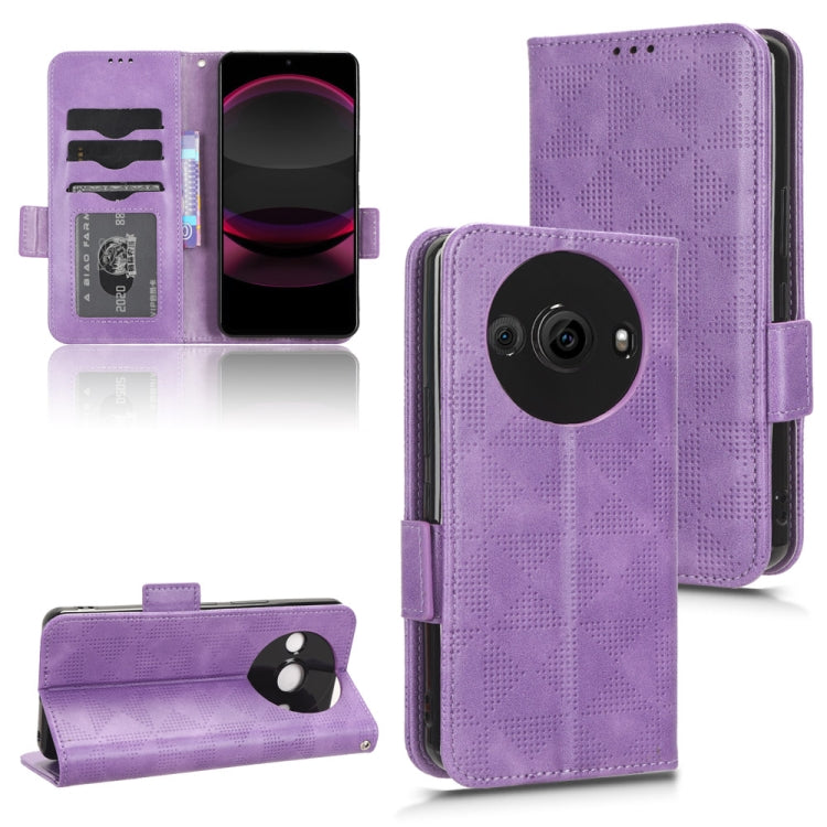 Funda de Cuero para Sharp Aquos R8 Pro con Patrón de Triángulo Simétrico (Púrpura)