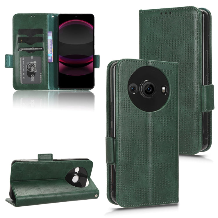 Funda de Cuero para Sharp Aquos R8 Pro con Patrón de Triángulo Simétrico (Verde)
