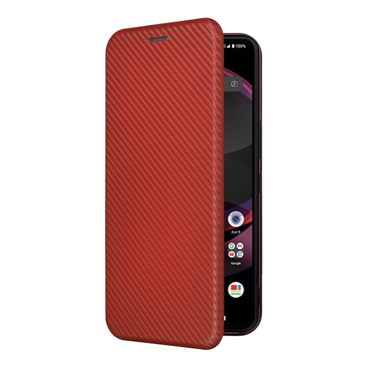 Funda de Cuero para Sharp Aquos R8 Pro con Textura de Fibra de Carbono (Marrón)