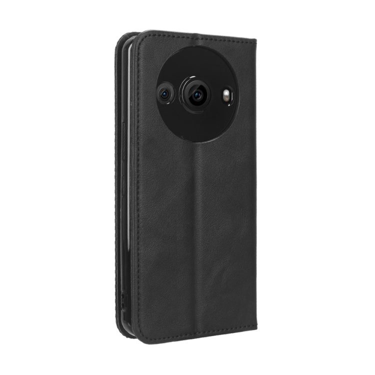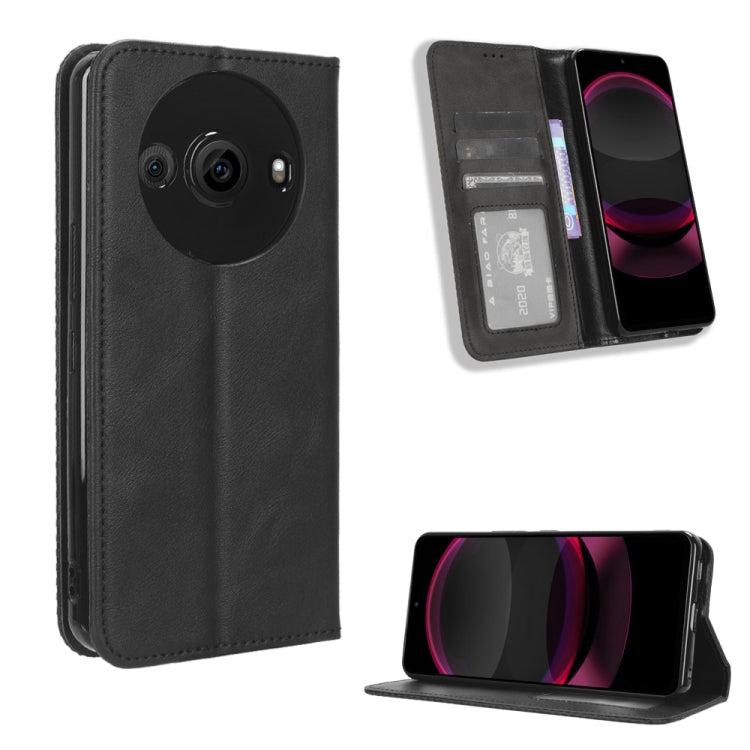 Funda de Cuero para Sharp Aquos R8 Pro con Hebilla Magnética y Textura Retro (Negro)