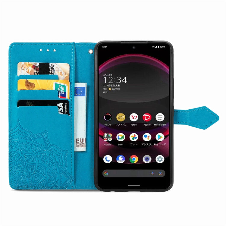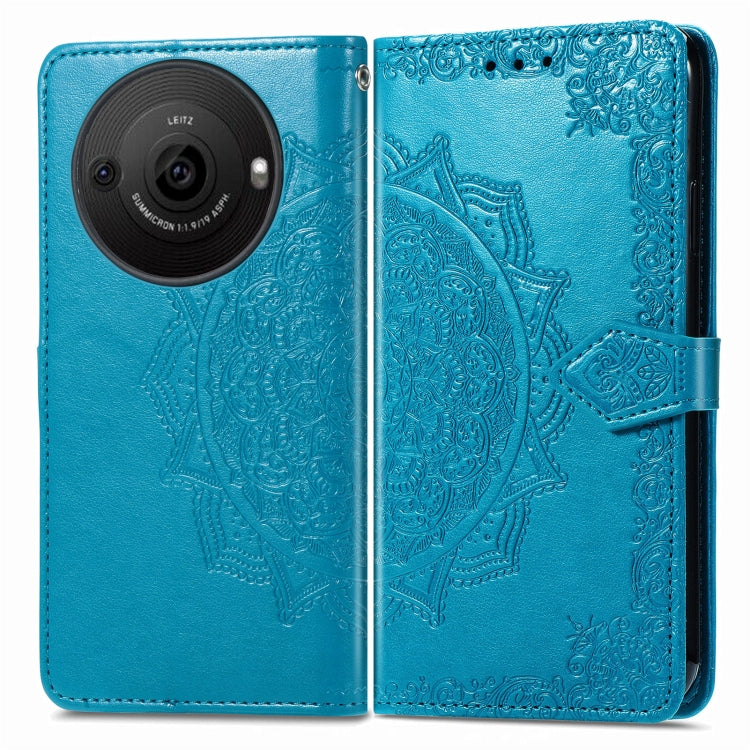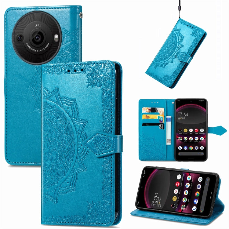 Funda de Cuero para Sharp Aquos R8 Pro Mandala Flower En Relieve (Azul)