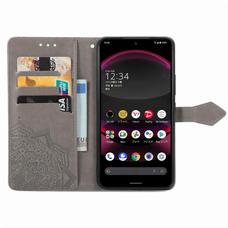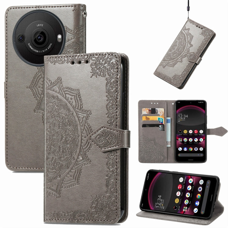 Funda de Cuero para Sharp Aquos R8 Pro Mandala Flower en Relieve (Gris)