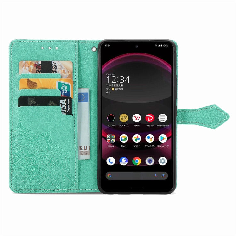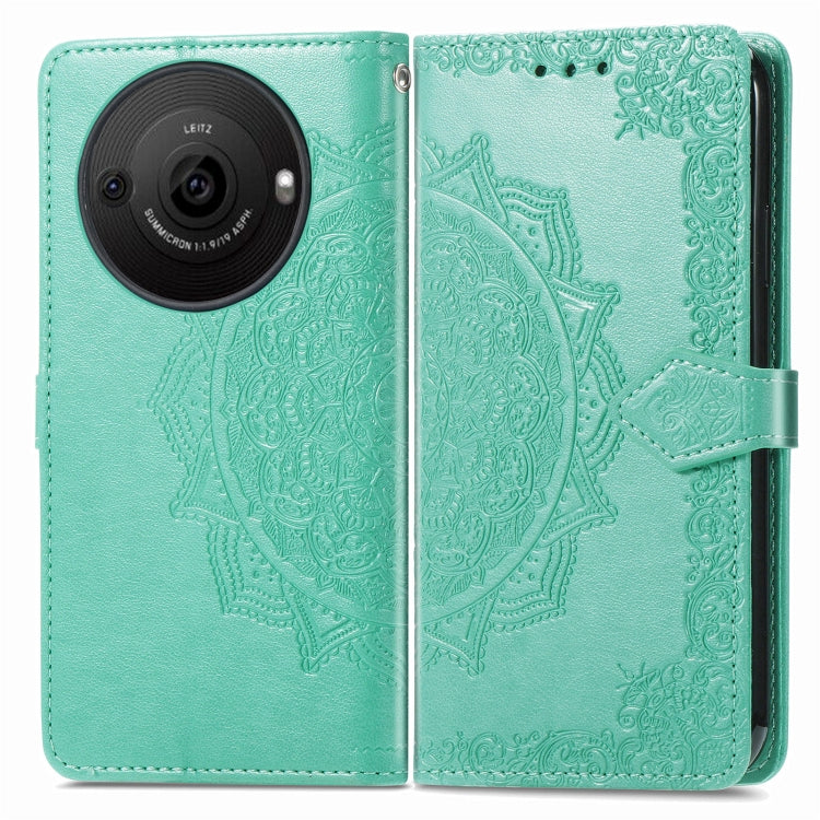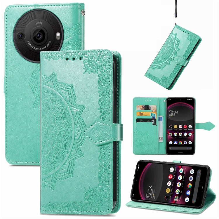 Funda de Cuero para Sharp Aquos R8 Pro Mandala Flower en Relieve (Verde)