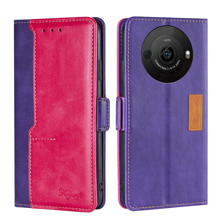 Funda de Cuero para Sharp Aquos R8 Pro Sh-51D con Hebilla Lateral y Color de Contraste (Púrpura + Rosa Roja)