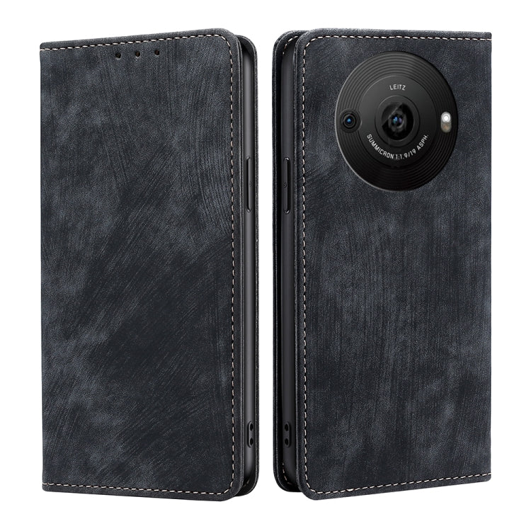 Funda para Sharp Aquos R8 Pro Sh-51D de Cuero Magnético con Rfid y Cepillo Antirrobo (Negro)