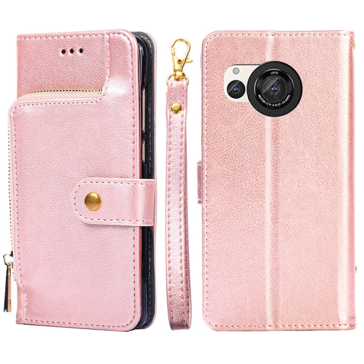 Funda de Cuero para Sharp Aquos R8 Sh-52D con Cremallera (Oro Rosa)