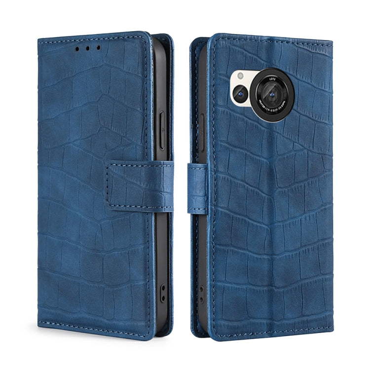 Funda de Cuero para Sharp Aquos R8 Sh-52D Skin Feel Cocodrilo con Cierre Magnético (Azul)