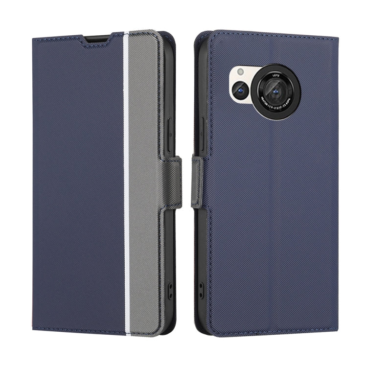 Funda de Cuero para Sharp Aquos R8 Sh-52D con Textura de Sarga y Botón Lateral (Azul)