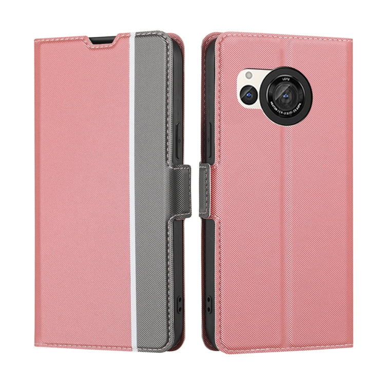 Funda de Cuero para Sharp Aquos R8 Sh-52D con Textura de Sarga y Botón Lateral (Rosa)