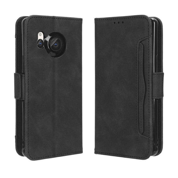 Funda de Cuero para Sharp Aquos R8 con Textura Becerro y Ranuras para Tarjetas (Negro)