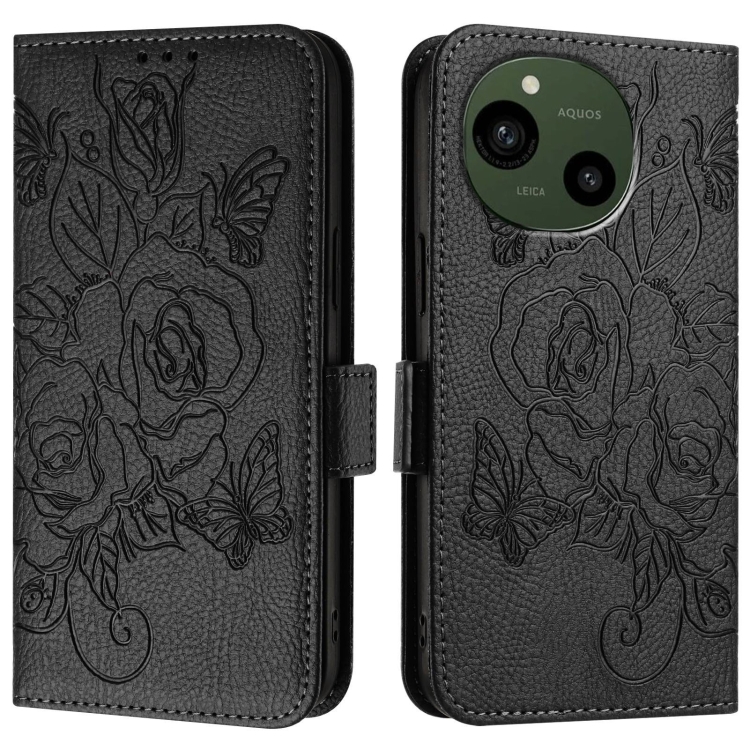 Funda de Cuero Antirrobo RFID para Sharp Aquos R9 con Relieve (Negro)