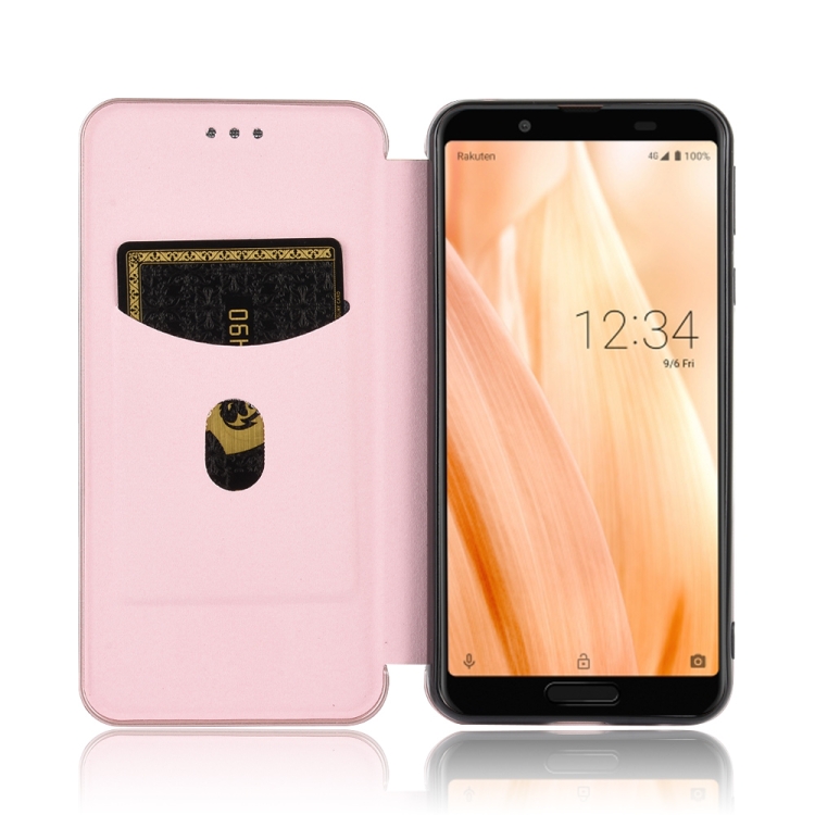 Carcasa para Sharp Aquos Sense 3 Lite Cuero Fibra de Carbono Magnética Tapa Horizontal TPU PC PU (Rosa)