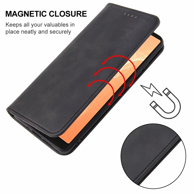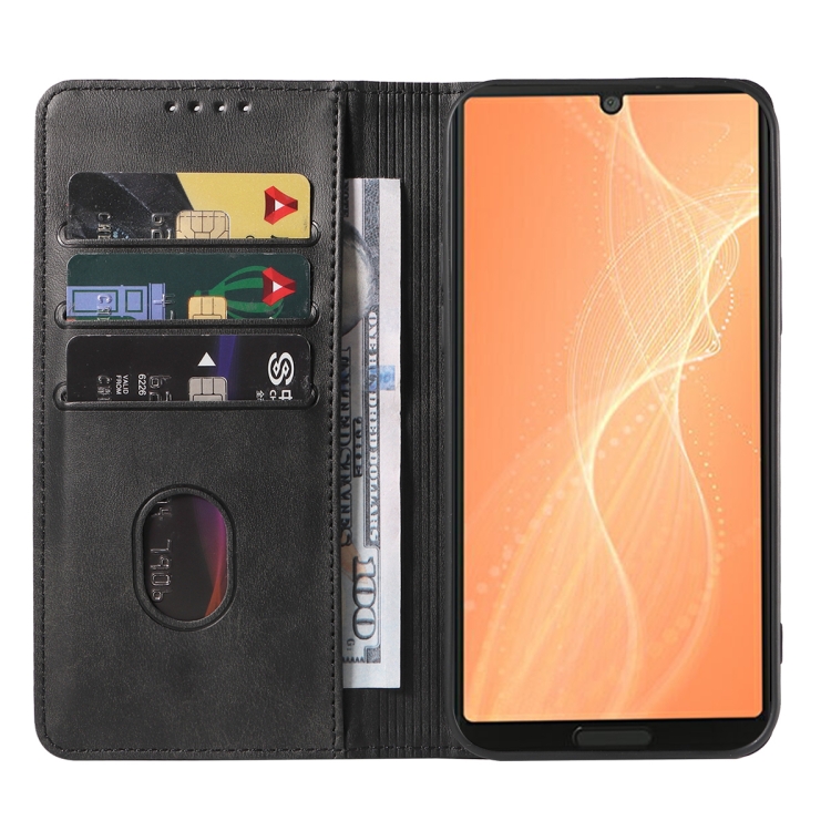Caja de Teléfono para Sharp Aquos Sense 4 de Cuero con Cierre Magnético (Negro)