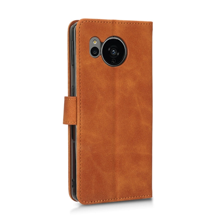 Funda Flip de Cuero para Sharp Aquos Sense 7 Plus Skin Feel Magnética (Marrón)
