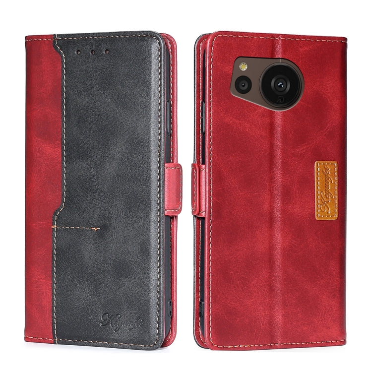 Funda de Cuero para Sharp Aquos Sense7 Plus con Hebilla Lateral y Color de Contraste (Rojo + Negro)