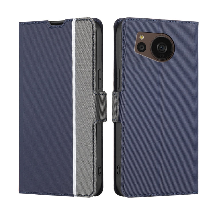 Funda de Cuero para Sharp Aquos Sense7 Plus con Hebilla Lateral y Textura de Sarga (Azul)