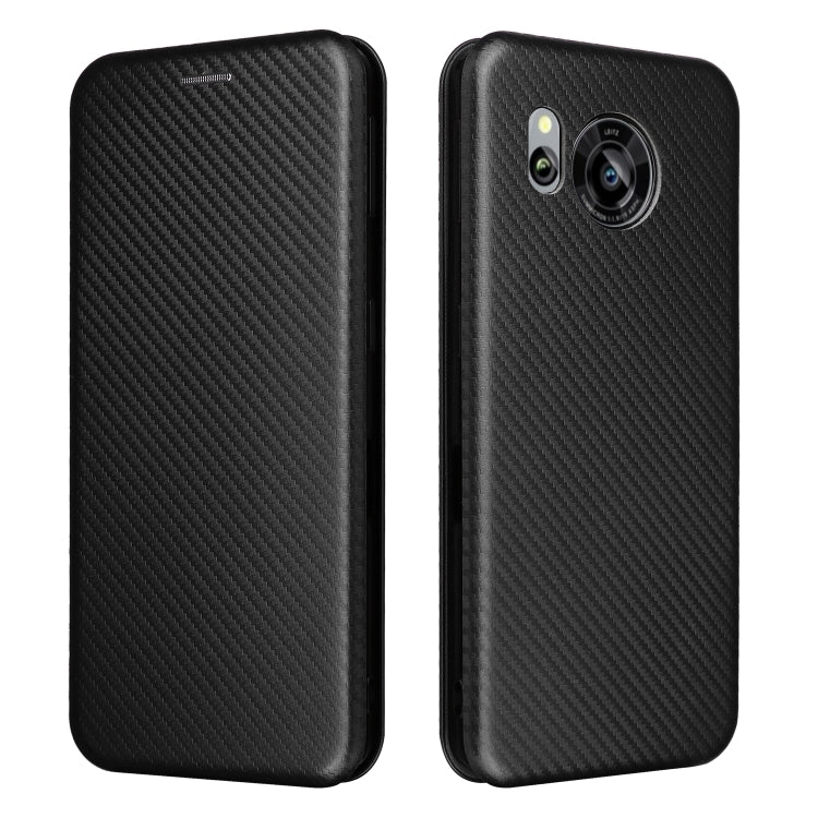 Funda de Cuero para Sharp Aquos Sense7 Plus con Textura de Fibra de Carbono (Negro)
