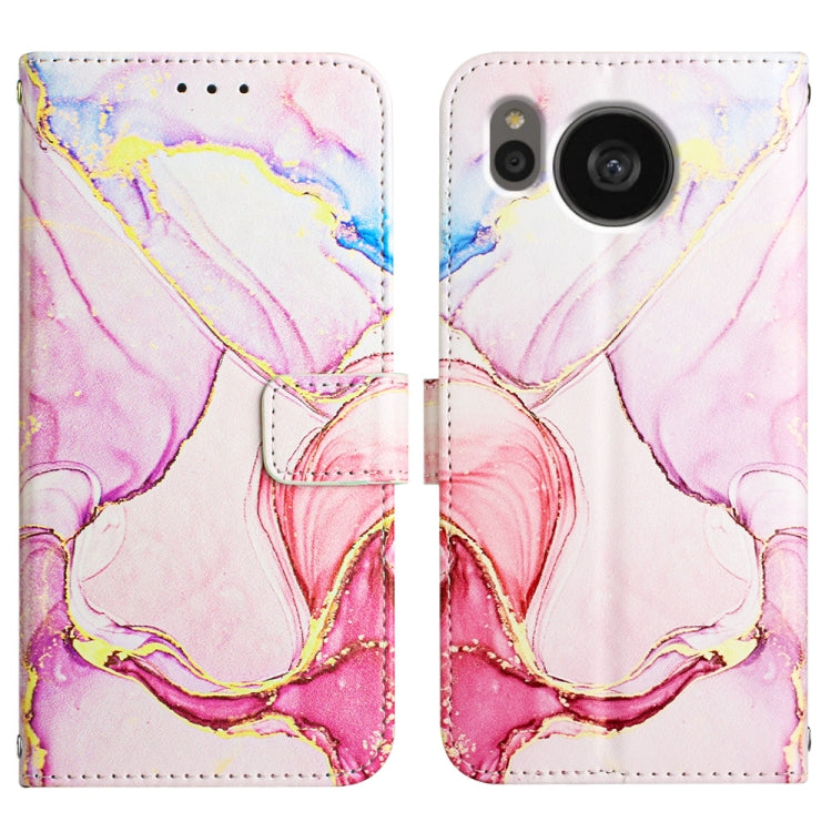 Funda Flip de Cuero para Sharp Aquos Sense7 Plus Pt003 con Patrón de Mármol (Oro Rosa)