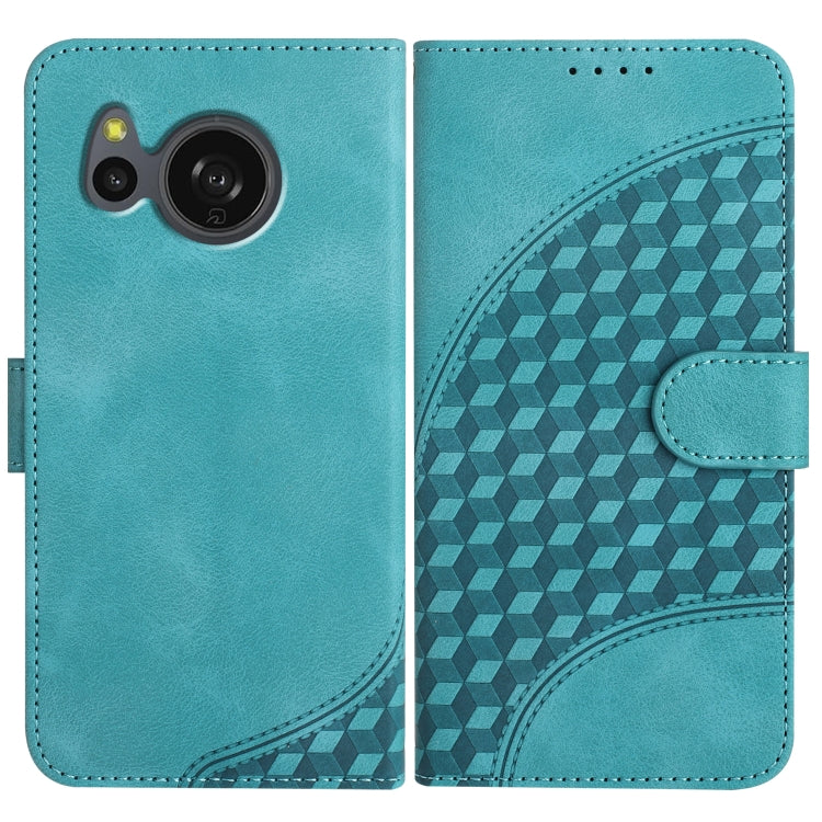Funda de Cuero para Sharp Aquos Sense7 Sh-53C Shg10 Yx0060 con Relieve y Cabeza de Elefante con Cordón (Azul Claro)