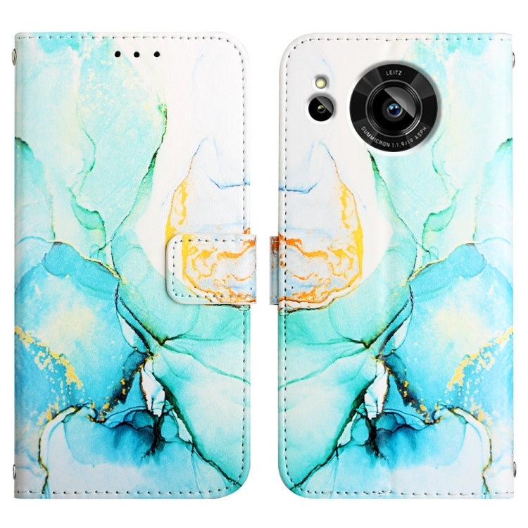 Funda de Cuero con Tapa para Sharp Aquos Sense7 Sh-V48 Pt003 Patrón Mármol (Verde)