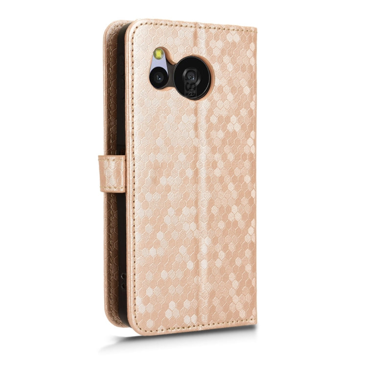 Funda de Cuero para Sharp Aquos Sense8 con Textura de Punto de Panal (Dorado)