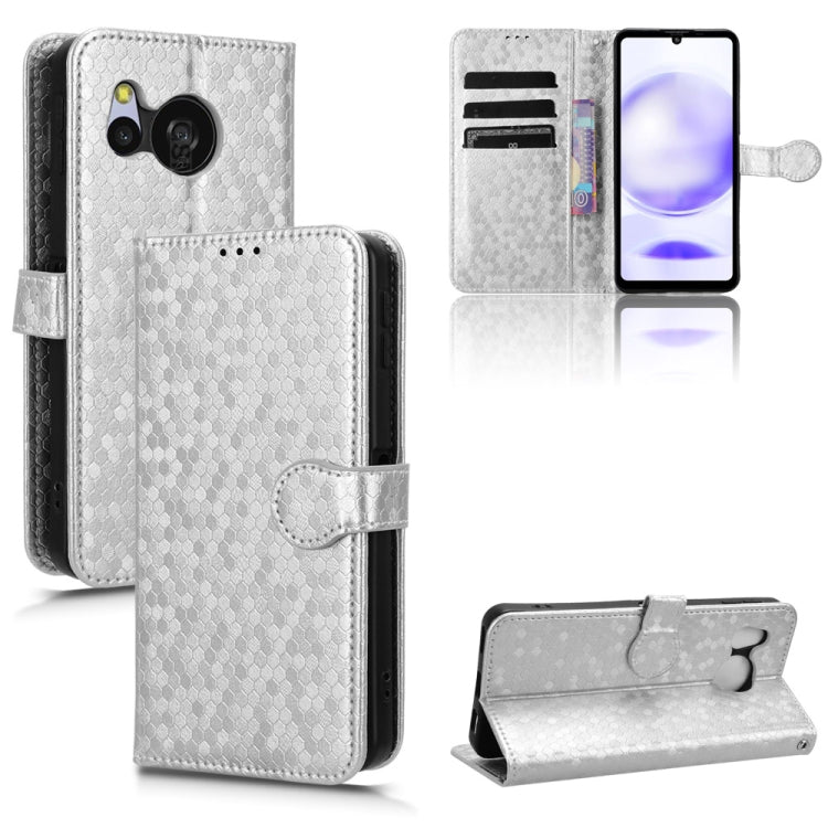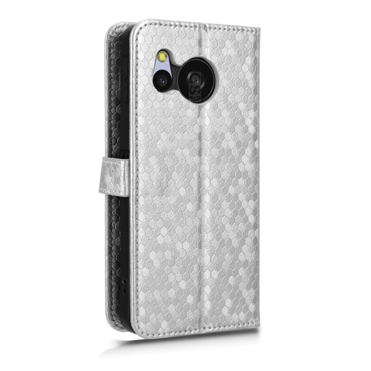 Funda de Cuero para Sharp Aquos Sense8 con Textura Punto de Panal (Plata)