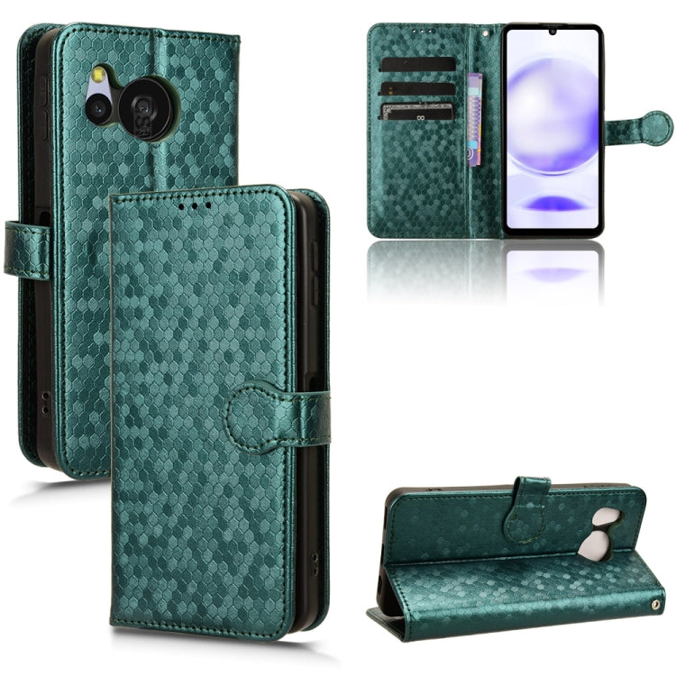 Funda de Cuero para Sharp Aquos Sense8 con Textura de Punto de Panal (Verde)