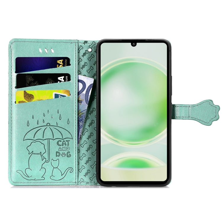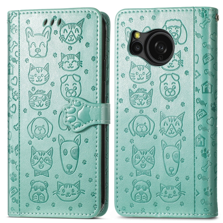 Funda para Sharp Aquos Sense8 de Cuero con Relieve Perros y Gatos (Verde)